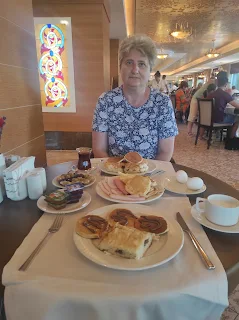 Храната беше обилна и разнообразна. Можеш да си поръчаш чай, мляко, кафе или безалкохолно със закуската. За обяд и вечеря можеш да си поръчаш чаша вино, бира или вода.
